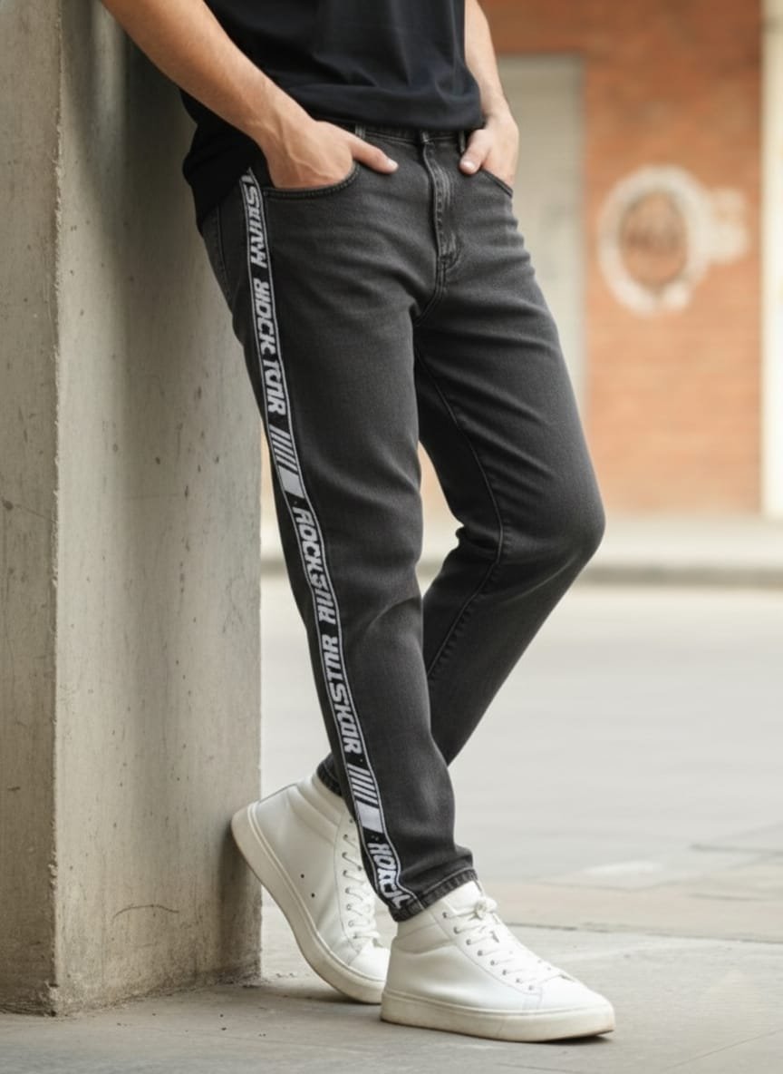 Men’s Side Tape Denim Jeans with Printed Stripe