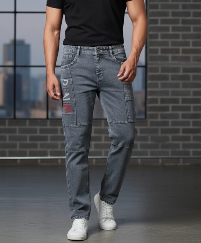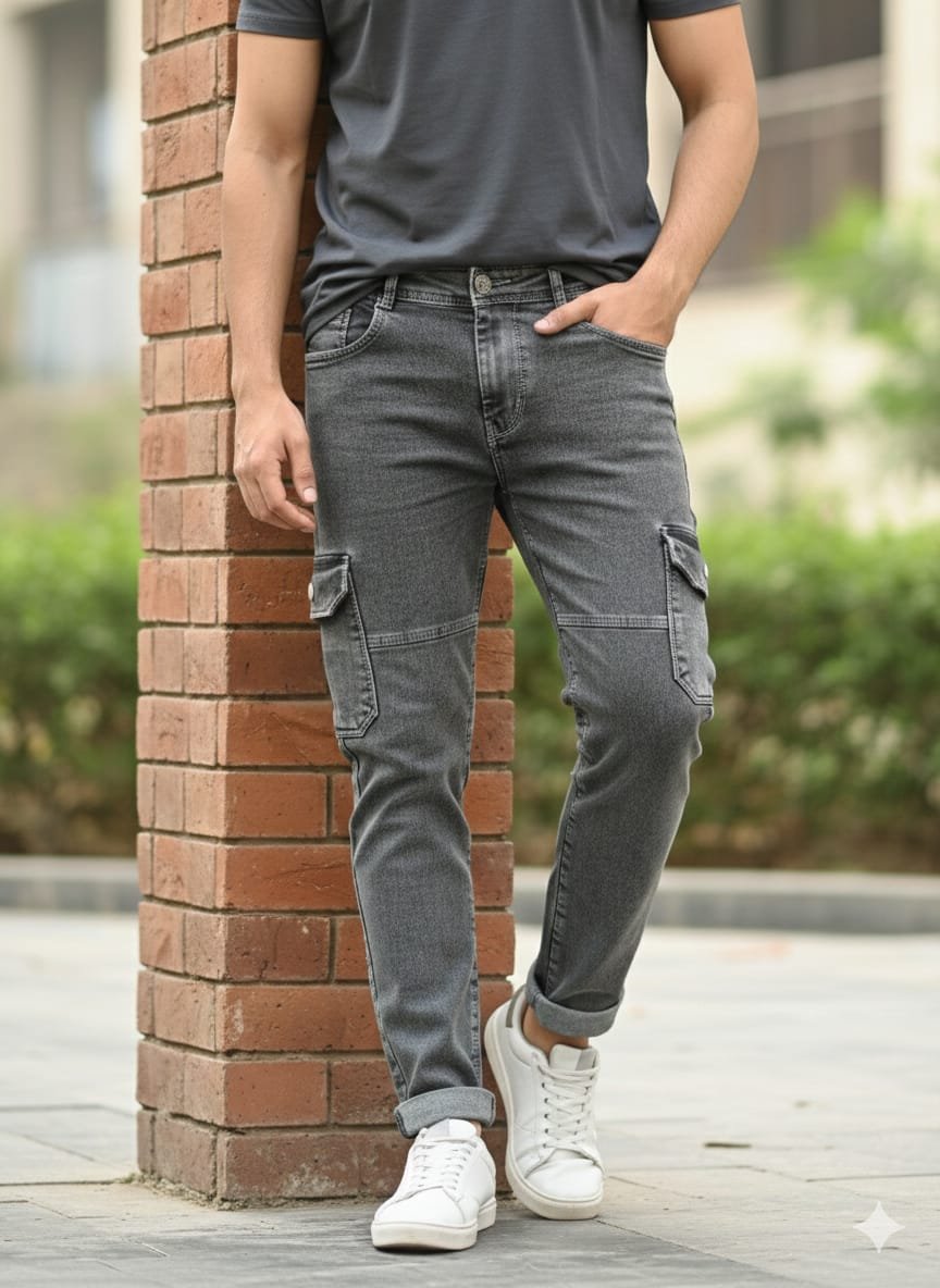 Men’s Grey Slim Fit Cargo Denim Jeans