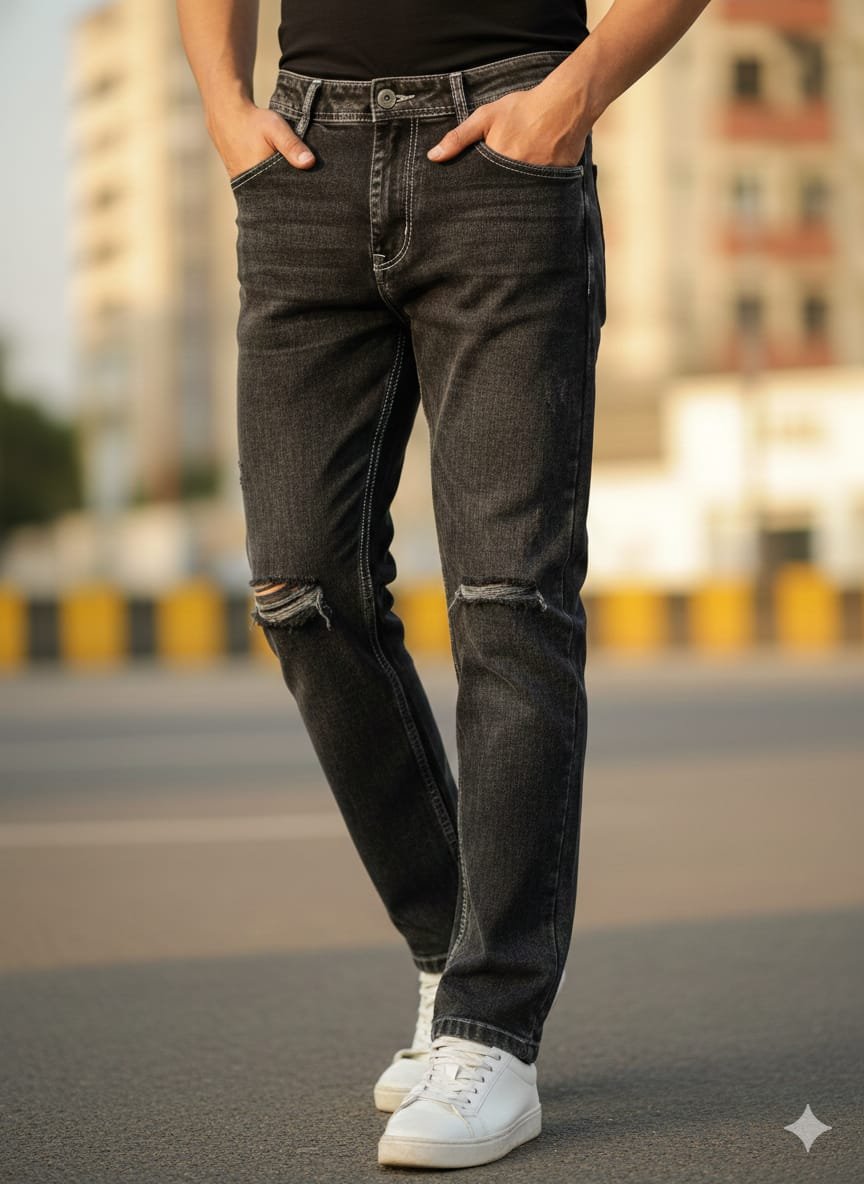 Men’s Black Slim Fit Ripped Denim Jeans