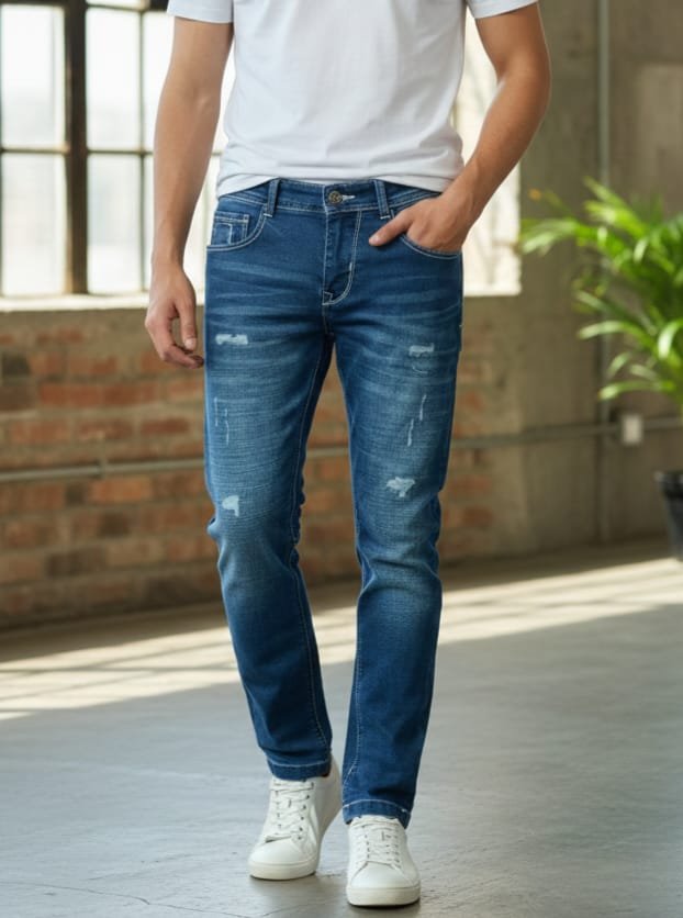 Men’s Slim Fit Mild Distressed Denim Jeans