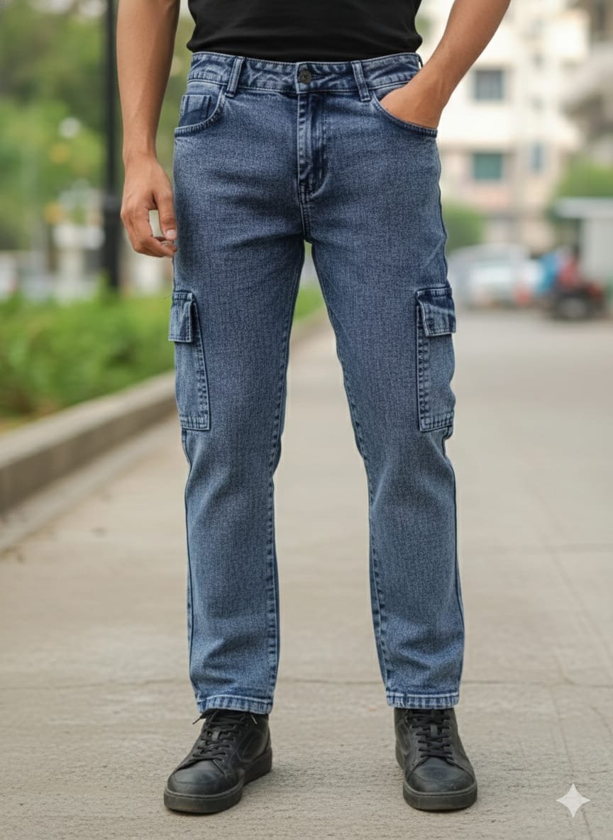 Men’s Slim Fit Denim Cargo Jeans